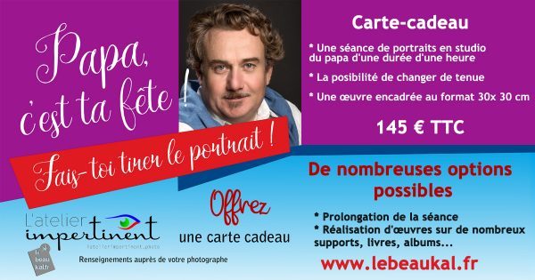 Après la Fête des Mères, le BeauKal, Studio Photo à Paris vous propose avec le soutien de « l’atelier impertinent », la carte cadeau pour la Fête des Pères.